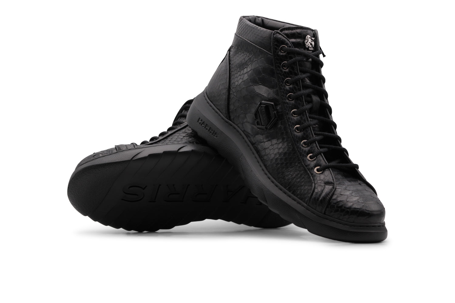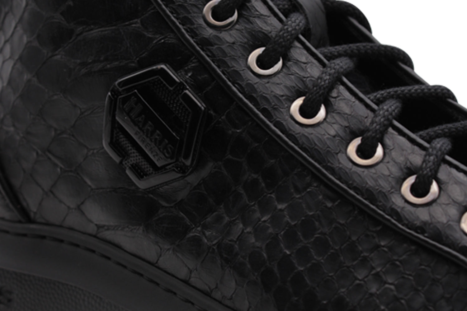 Symbole d'artisanat et de style contemporain, cette bottine en cuir python noir allie matières nobles et détails exclusifs. La semelle en caoutchouc Innovazione garantit un confort quotidien, tandis que les accessoires en nickel et le logo en métal noir ajoutent une touche d'élégance discrète et raffinée.