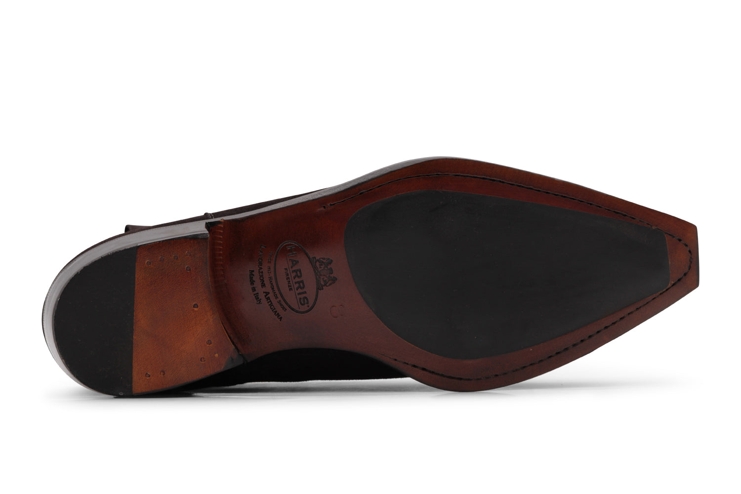 Realizzato in suede testa di moro con sfumature artigianali, questo polacchino unisce raffinatezza e comfort. La suola in cuoio con inserto in gomma antiscivolo e la lavorazione Blake Rapid ne sottolineano la qualità e la durata.