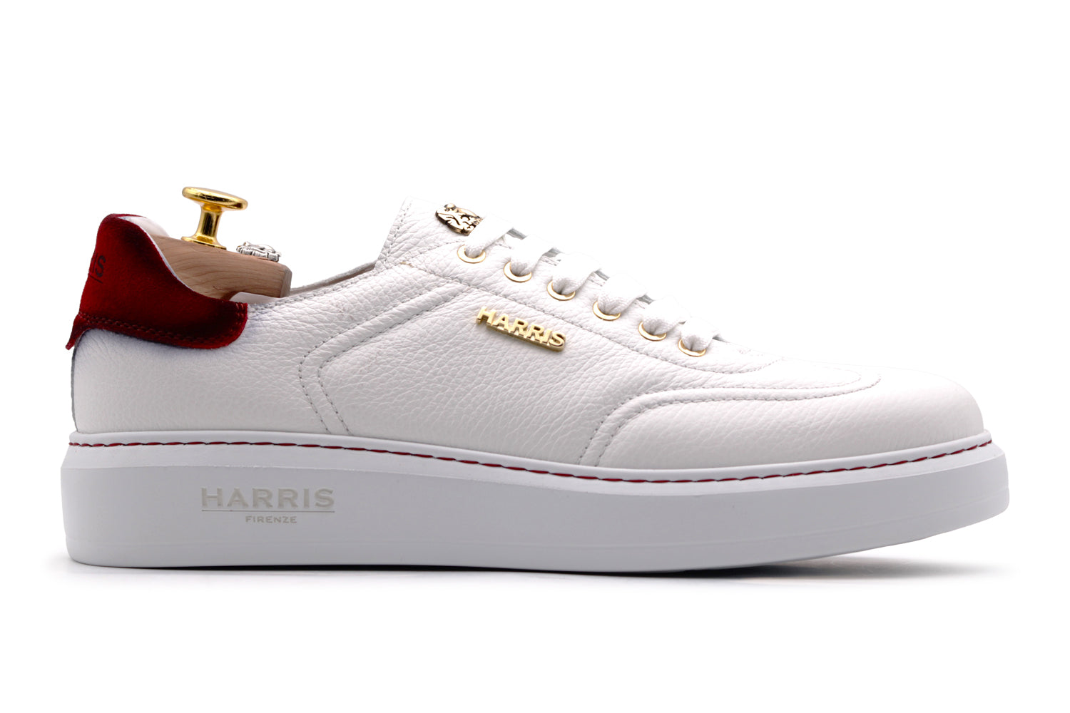 Questa sneaker Harris è pensata per chi cerca eleganza senza rinunciare alla praticità. Realizzata in morbida pelle di vitello pieno fiore con stampa effetto alce, è impreziosita da un tallone in suede sfumato a mano che dona un tocco artigianale. L’assenza di cuciture interne garantisce un’esperienza di calzata estremamente confortevole, ideale per l’uso quotidiano. Completano il design gli accessori in nichel e la suola in gomma bianca a cassetta che caratterizzano il suo design.
